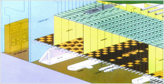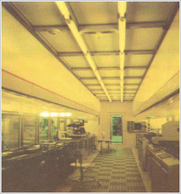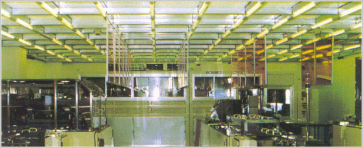 청정도 CLASS 1, 10, 100의 수직증류방식 크린룸에서는 천정면에 초고성능 필터(ULPA 혹은 HEPA)를 설치하고, DEAD SPACE를 적게 하는 알류미늄 프레임 방식이다. 당사에서는 SYSTEM CEILING라 부르며 MEGA BIT 시대에 알맞은 안정된 신뢰의 SYSTEM입니다.